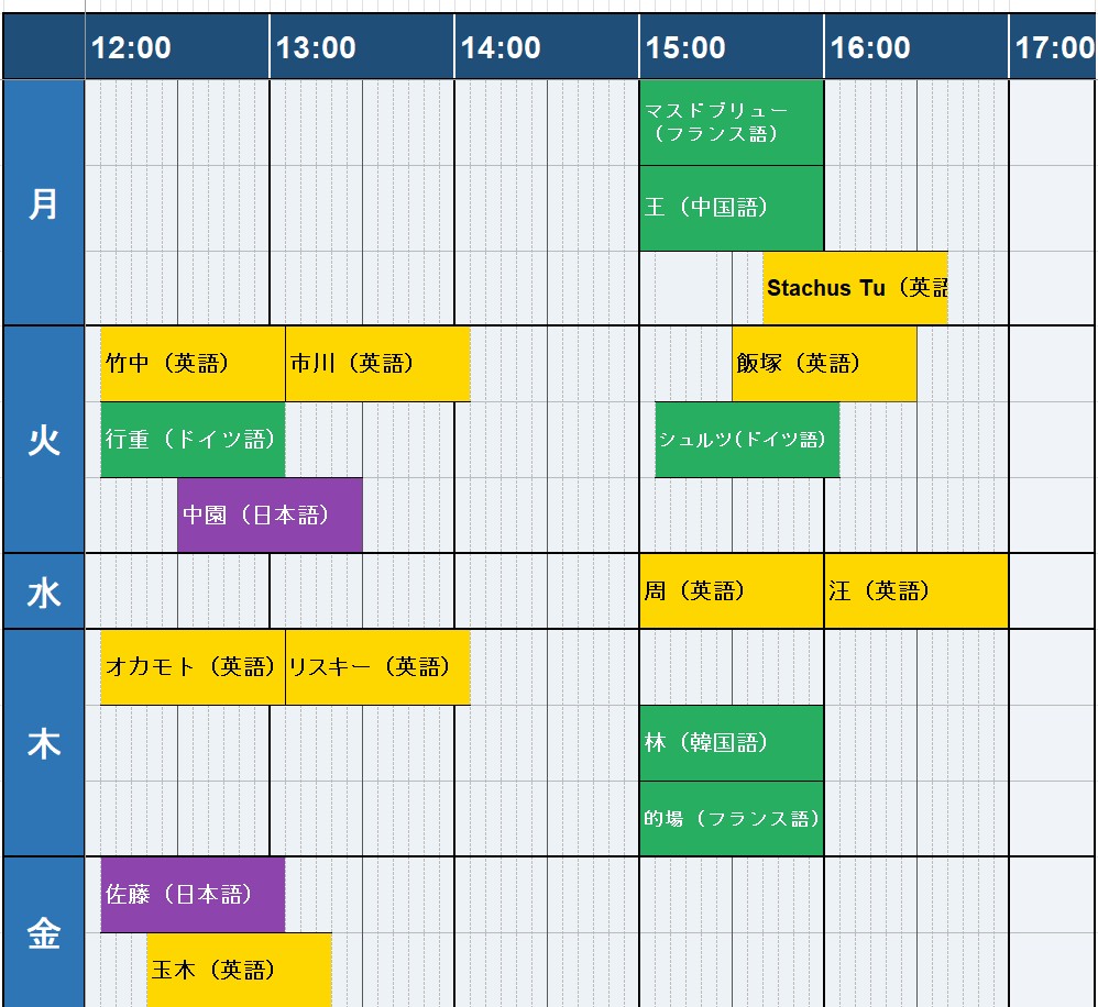 OKAMOTO,Michael mikeokamoto@ 木曜 12:05-13:05 |